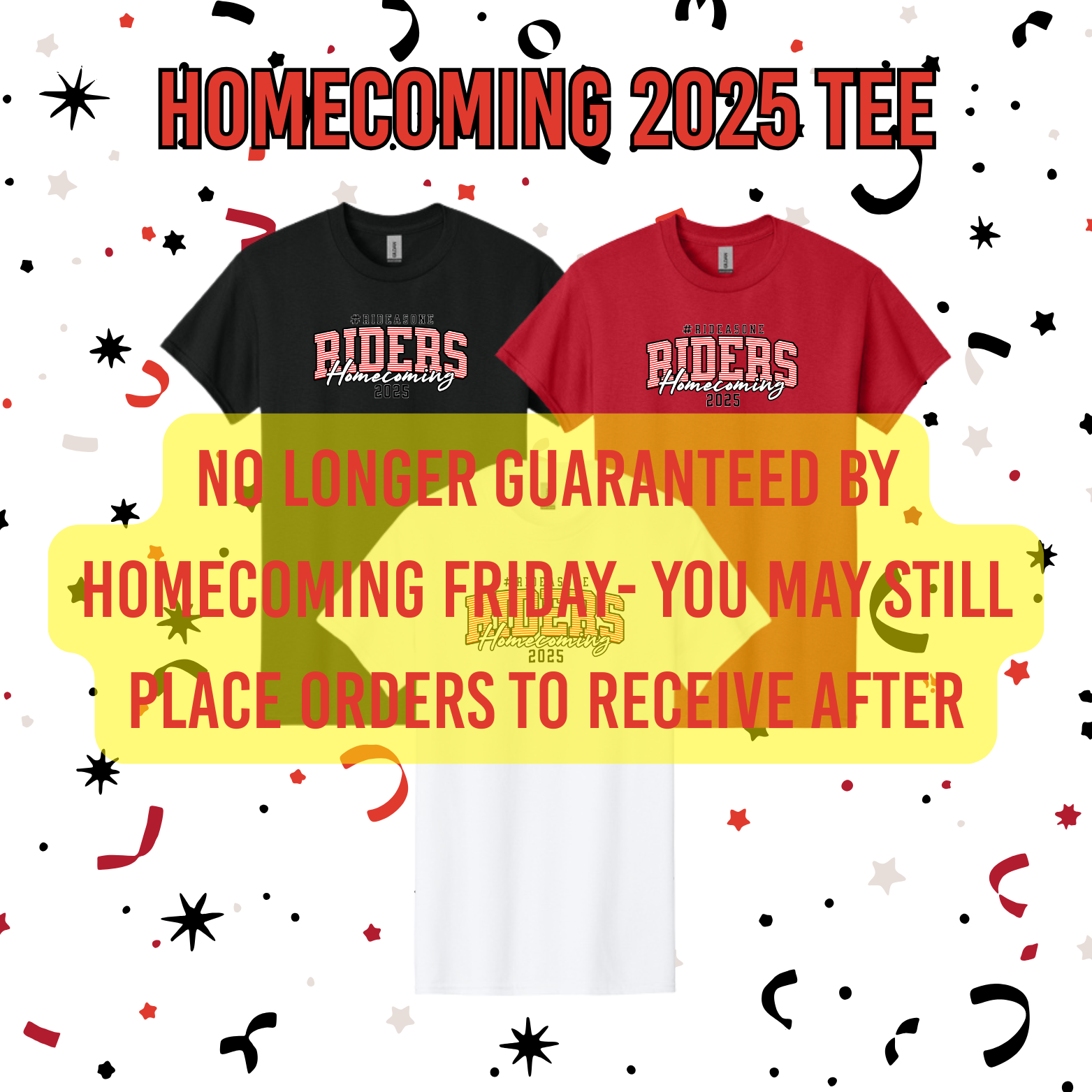 HOMECOMING SHIRTS MUST BE ORDERED BY SEPTEMBER 9TH TO ARRIVE IN TIME FOR HOMECOMING!